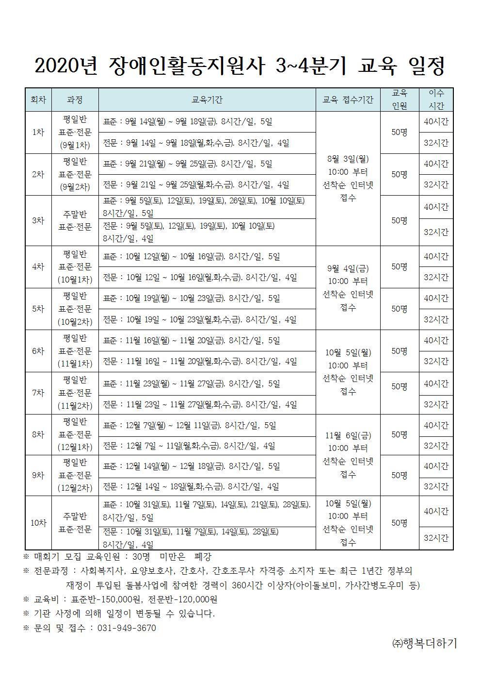 공지사항 2020년 장애인활동지원사 교육 일정 안내 작성자 행복더하기 등록일 20.05.26 조회수 10,708 첨부파일 2020년 장애인활동지원사 3~4분기 교육 일정 변경(안)001.jpg12KB 이전글 다음글 목록