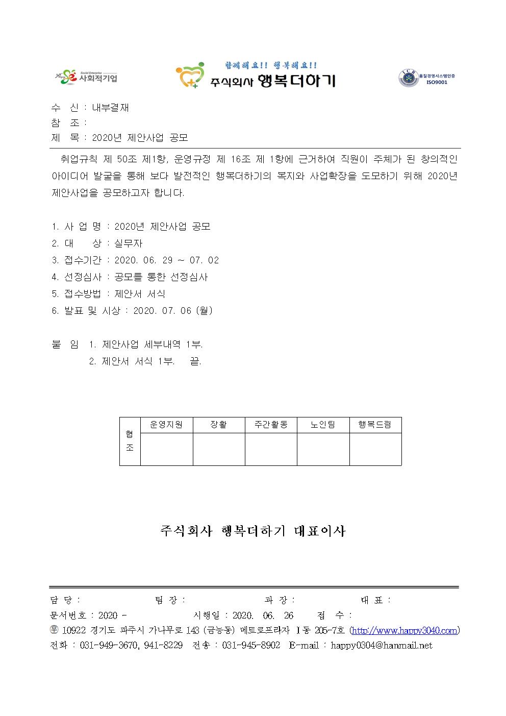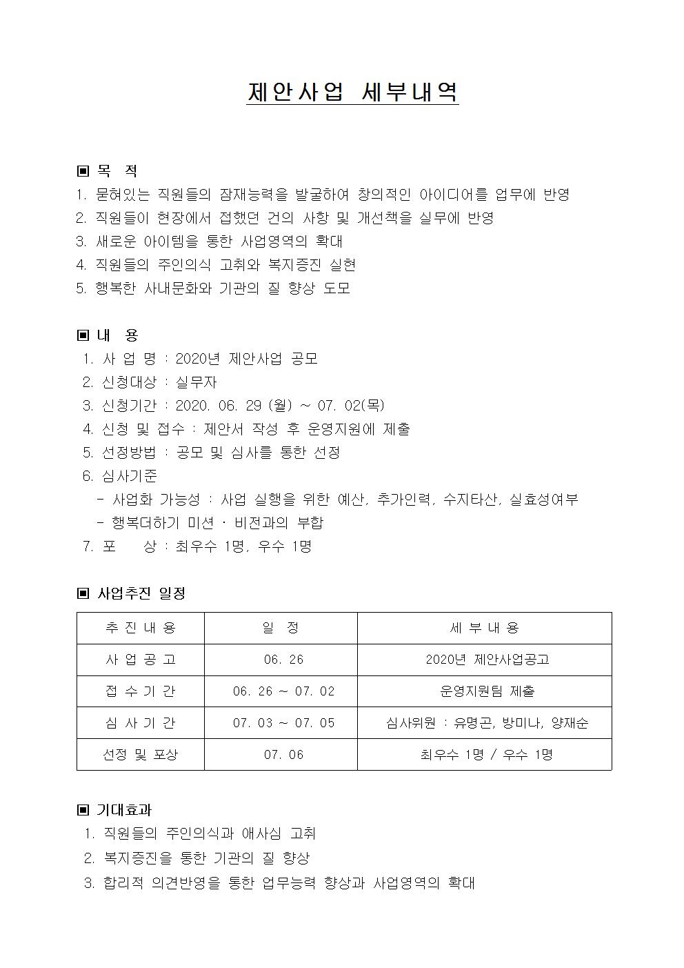 2020년 행복더하기(실무자) 제안사업 공모 및 시상