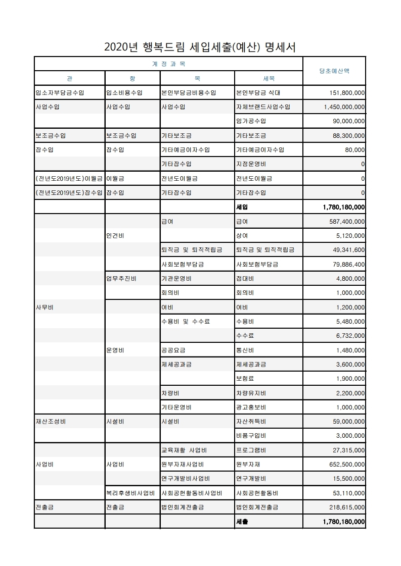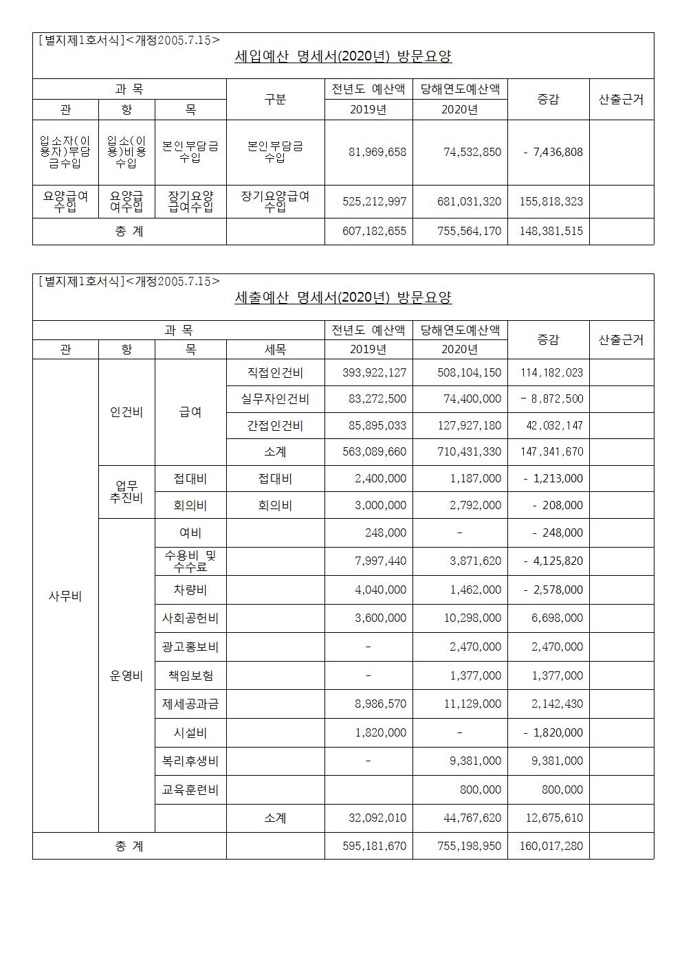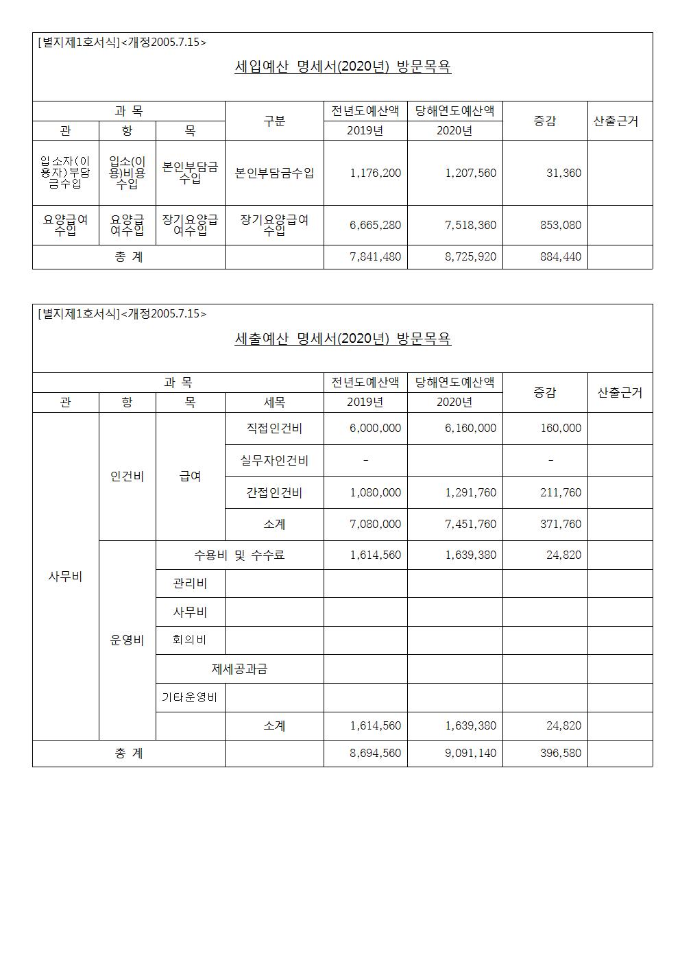 2020년 행복더하기 예산서(행복드림/방문요양/방문목욕)