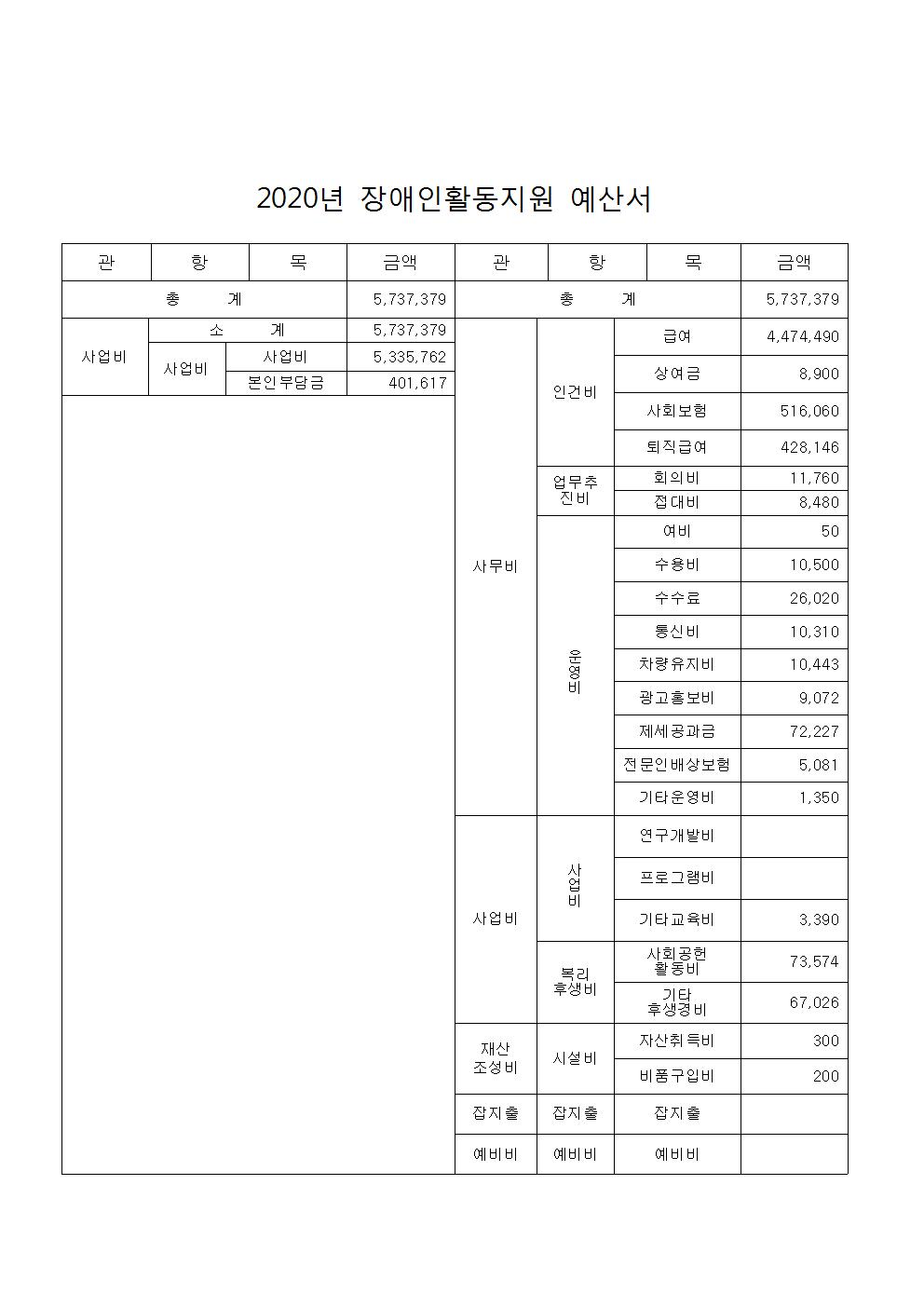 2020년 장애인활동지원 예산서
