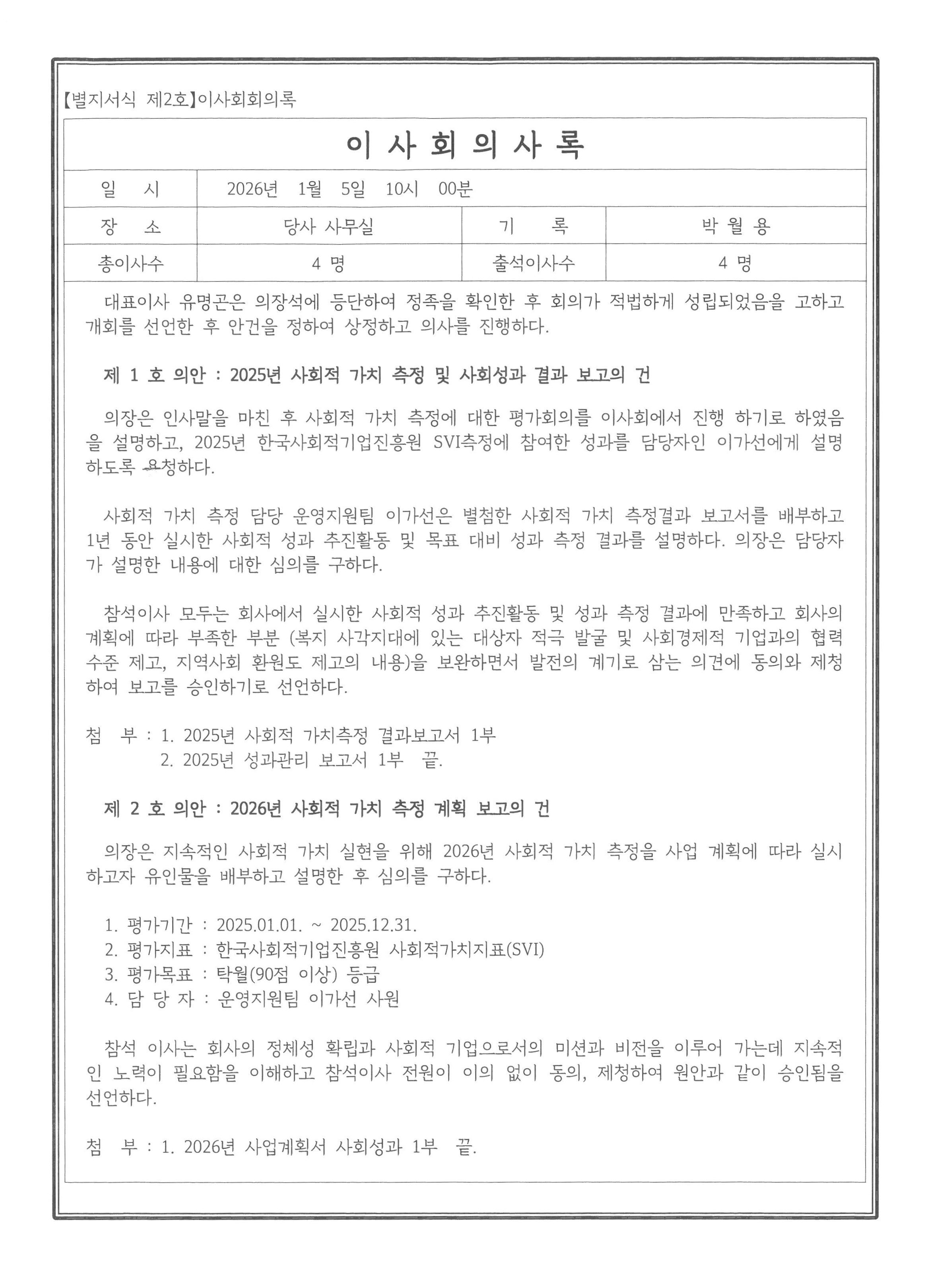공지사항 행복더하기 2025년 사회적 가치측정 및 성과보고 관련 이사회 회의 공지 작성자 행복더하기 등록일 26.01.21 조회수 152 첨부파일 S28BW-826012116321.pdf12KB 이사회 의사록 내 기재된 첨부파일은 목록으로 돌아가 제목 옆 화살표를 눌러 다운로드하여 보실 수 있습니다. 이전글 다음글 목록