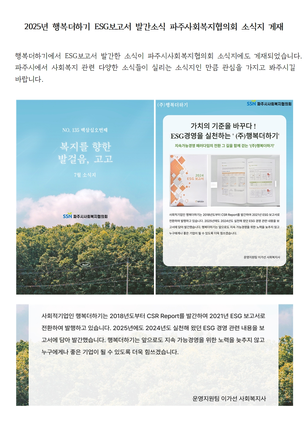 ESG보고서발간 소식 파주시사회복지협의회 소식지 게재!